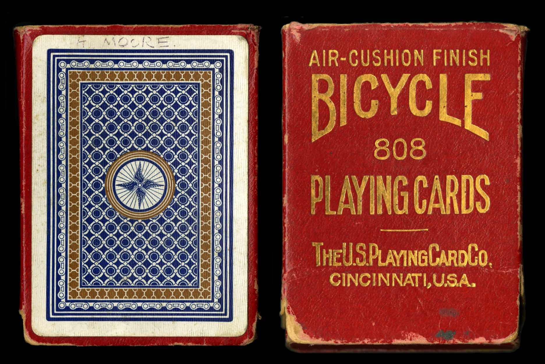 o fIntroduced in 1908. Discontinued in 1910. This is the rarest of the three two-tone designs that were released solely in the United Kingdom. I have never seen a complete Chain deck, only singles. All three of the designs are scarce, each having been printed in a single print run according to Mrs. Robinson. The other two designs are Handlebar and Saddle. Curiously, Chain is the only one of the three that was issued with both a black and brown back, and the usual blue and brown.